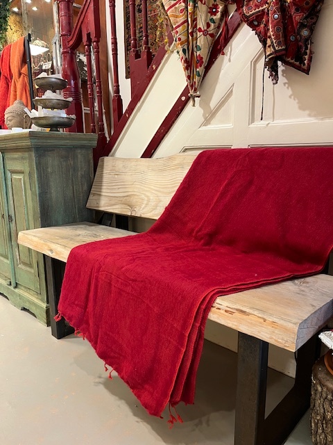 Deze handgeweven deken heeft een afmeting van 220 x 120 cm. Leverbaar in ruim 55 kleuren, dus een altijd een deken passend bij jou en jouw interieur. Deze deken is donkerrood van kleur.